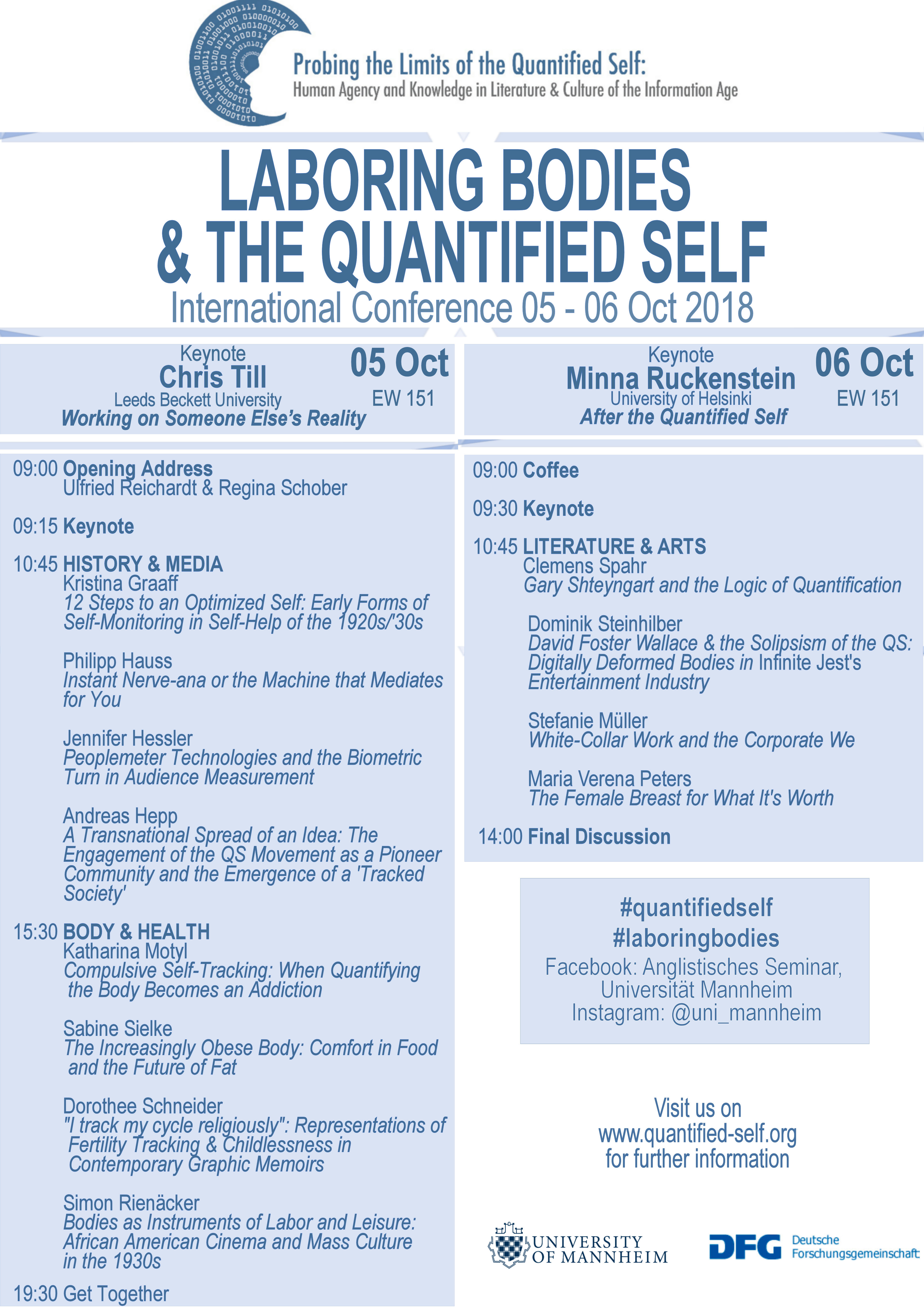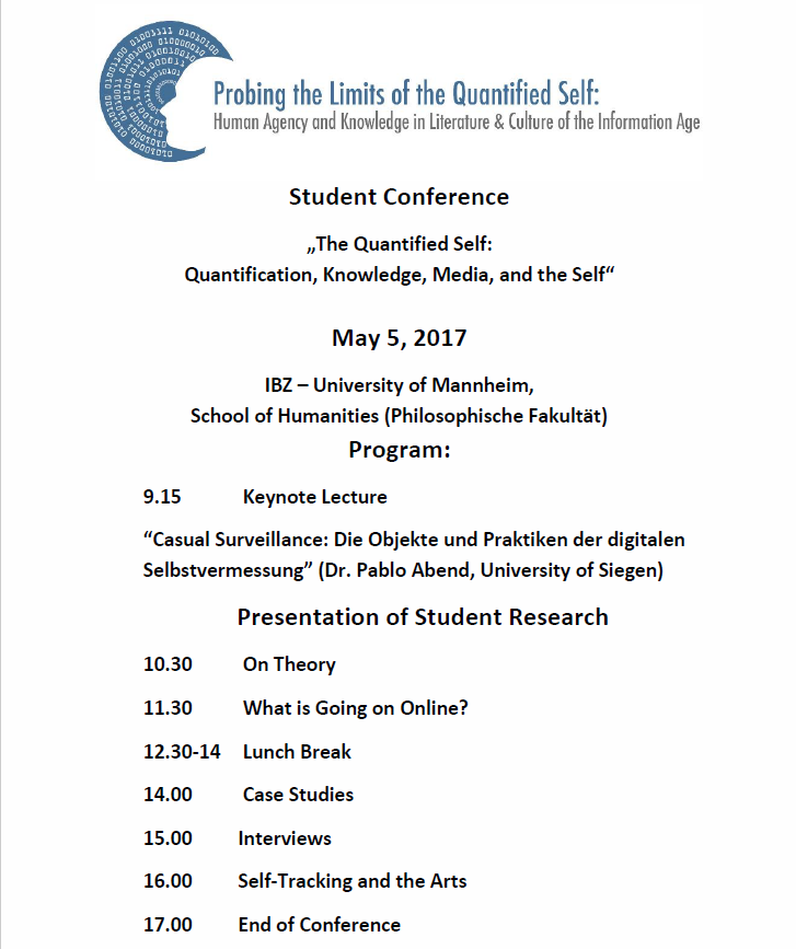 This conference is part of the DFG project ‘Probing the Limits of the Quantified Self: Human Agency and Knowledge in Literature and Culture of the Information Age’