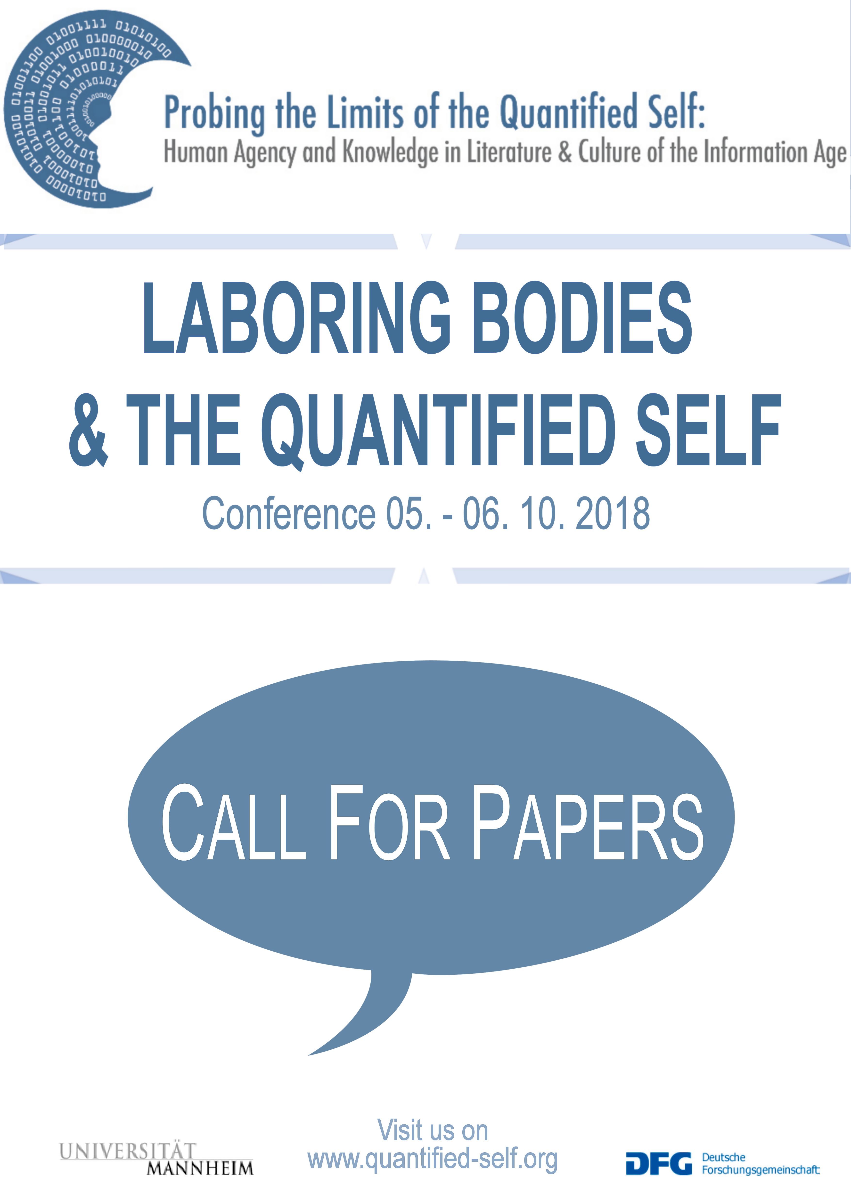 The research project “Probing the Limits of the Quantified Self – Human Agency and Knowledge in Literature & Culture of the Information Age,” funded by the German research association (DFG), invites scholars to submit proposals for its postgraduate conference – Life Writing in the Digital Age: Quantification, Optimization and the Self. The conference will be held at the University of Mannheim on September 29-30, 2017.